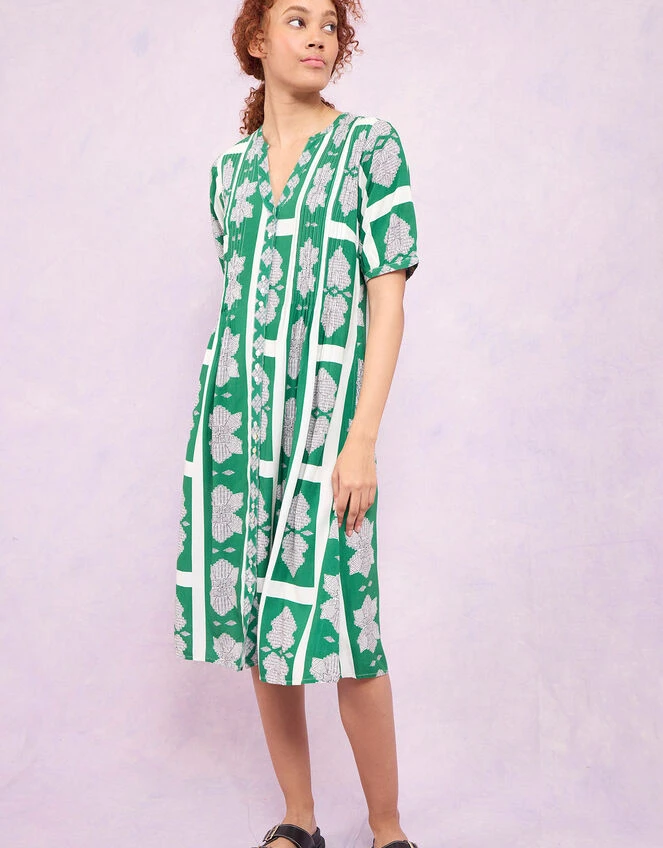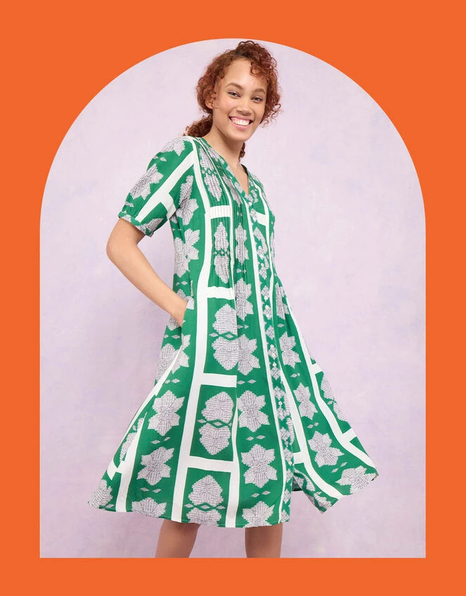A fluid silhouette for every day comfort, take the Ula dress for a spin during brunch-and-shopping dates. It features a straight, relaxed cut with pleats and buttons through the bodice. Finished with short sleeves, style the midi length with tie-up sandals to complete the look.