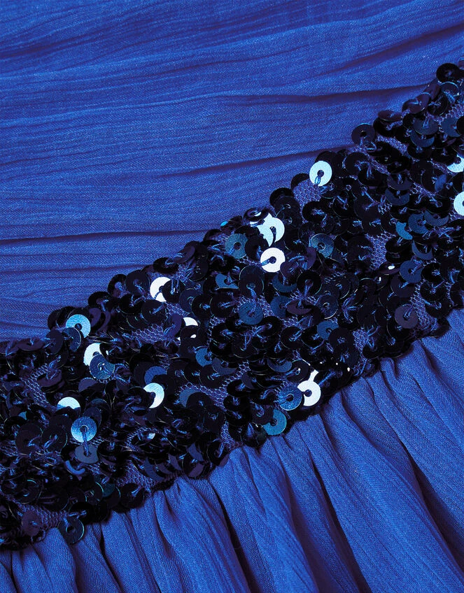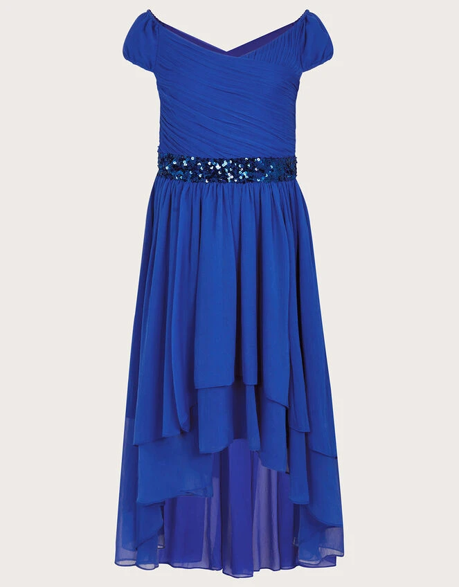 Dress to impress this prom night in this pretty pleated midi dress. Designed with a hanky hem and Bardot neckline, Abigail features a sleek crossover bodice that’s belted with sequins at the waist, flowing beautifully into a layered skirt. Pair with low heels and a clutch for the perfect prom look.