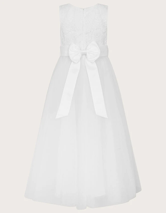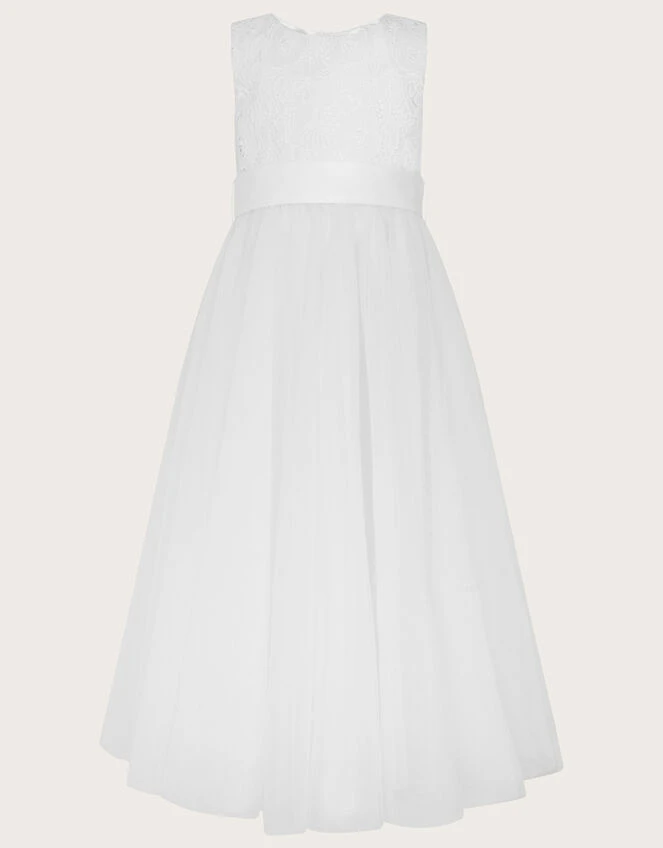 They’ll be the best-dressed bridesmaid at the wedding in this piece. It comes complete with a tulle skirt and lace bodice, tied together with a satin bow that falls beautifully at the back.