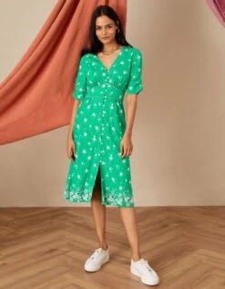 Picnics, garden parties… we see this piece everywhere this summer. The grassy green backdrop and floral print breathes a sense of fresh air into your edit, whilst the detailed empire line and v-neckline keeps it feminine.