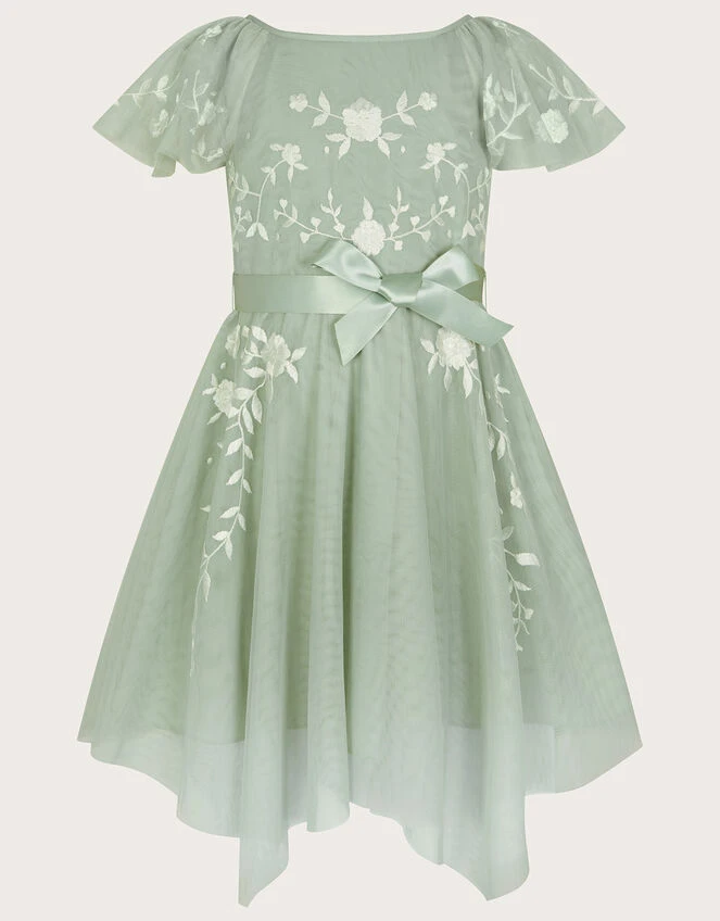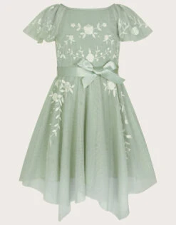 MONSOON Amelia Embroidered Tulle Dress Green