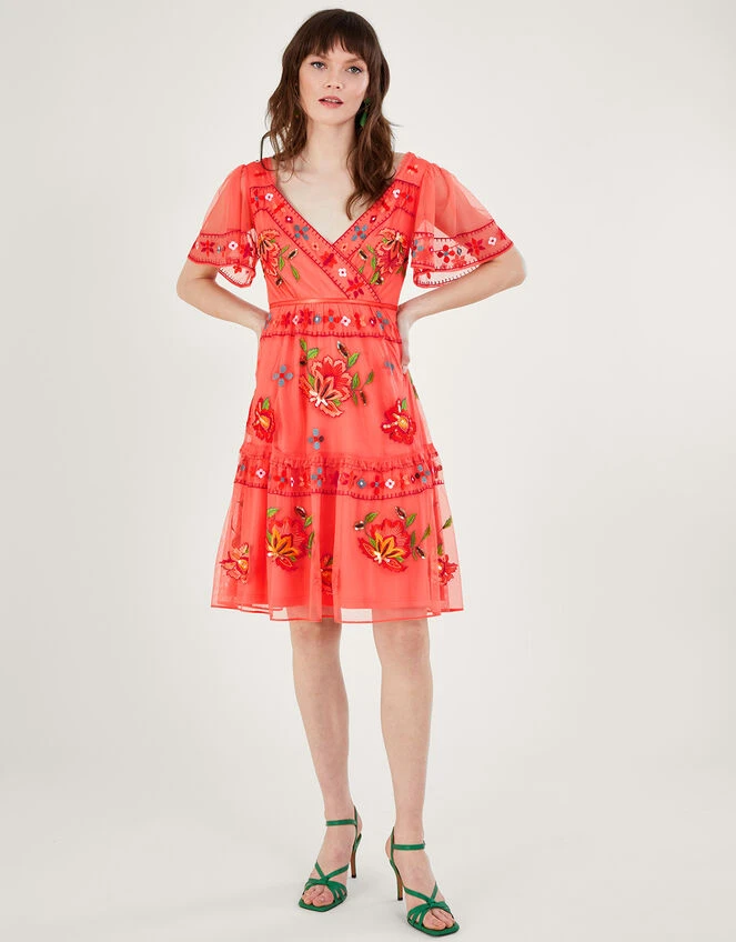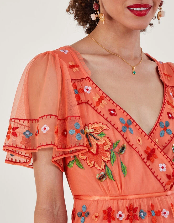 Our Ana dress whisks a breath of fresh air into your occasion edit, with intricate details that are found throughout the mini length. Beginning with the net angel sleeves that drape over the shoulders, the bodice presents a bouquet of blooming florals. Suitably swishy for an end-of-the-night dance, the skirt encourages free movement as it falls into a relaxed fit.