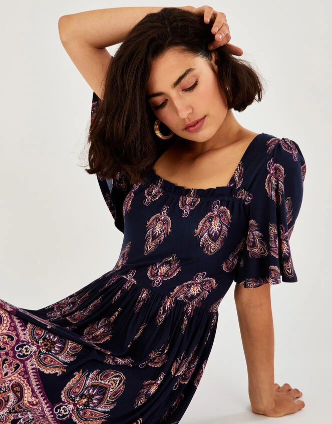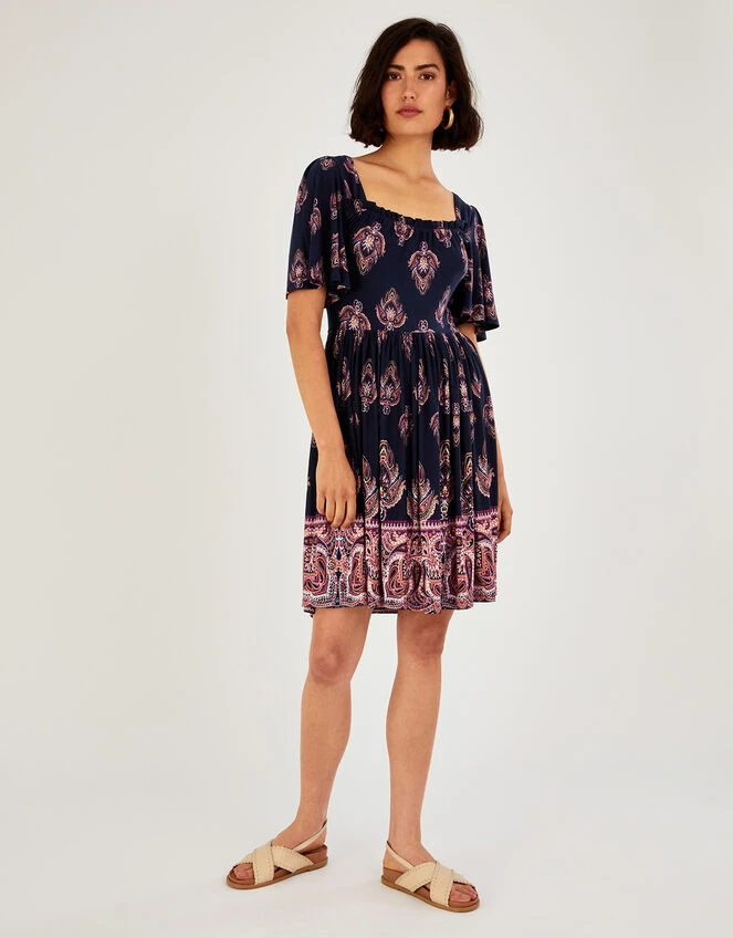 MONSOON Angel Sleeve Jersey Short Dress Blue