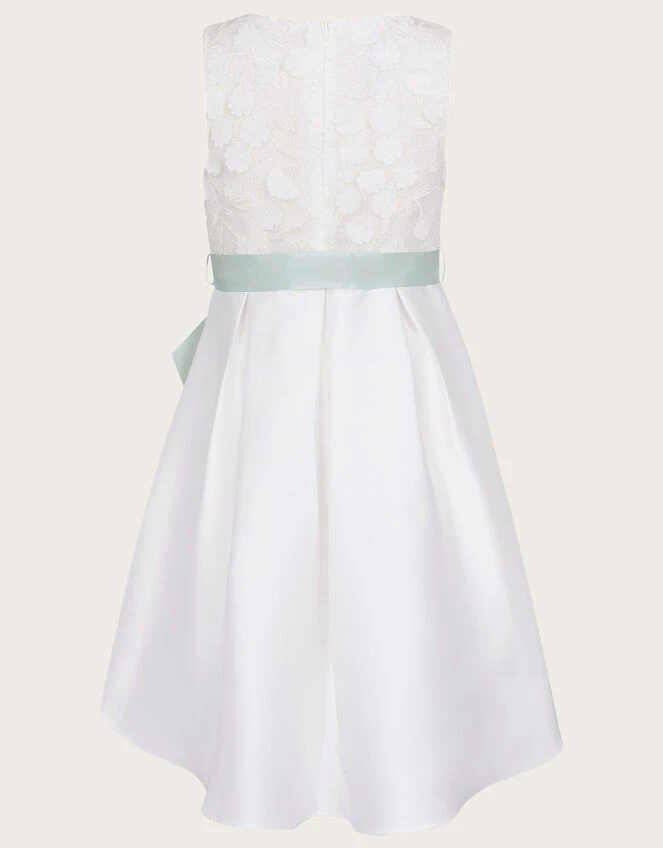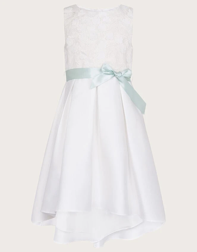 Perfect for weddings and christenings, our Anika dress is created in duchess twill with floral embroidery and 3D appliques. The skirt is pleated with a high low hemline and the back fastens with a concealed zip. Fully lined. Ivory