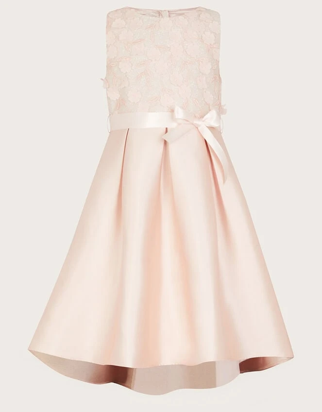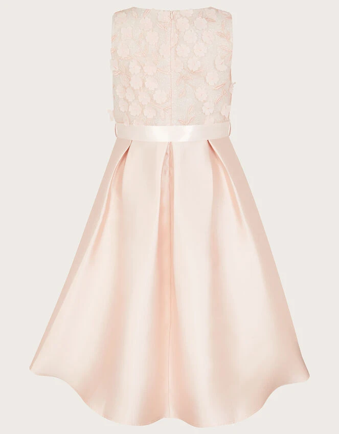 Perfect for weddings and christenings where ivory isn’t on the dresscode, our Anika dress is created in duchess twill with floral embroidery and 3D appliques. The skirt is pleated with a high low hemline and the back fastens with a concealed zip. Fully lined. Pink