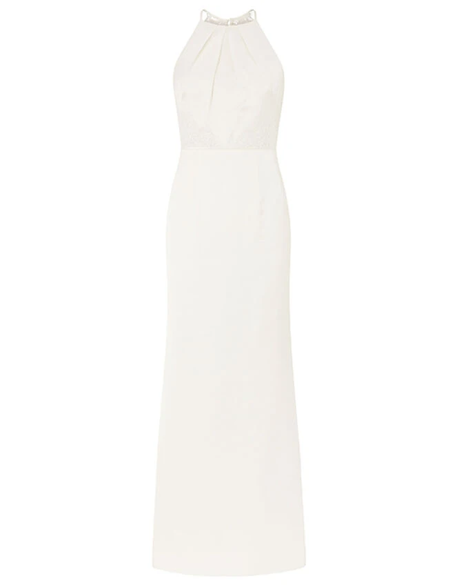 MONSOON Anne Lace Back Satin Maxi Wedding Dress Ivory