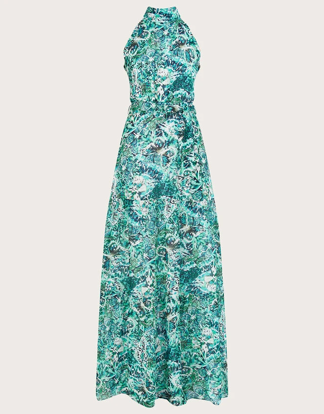 MONSOON Arlo Halter Print Maxi Dress Green