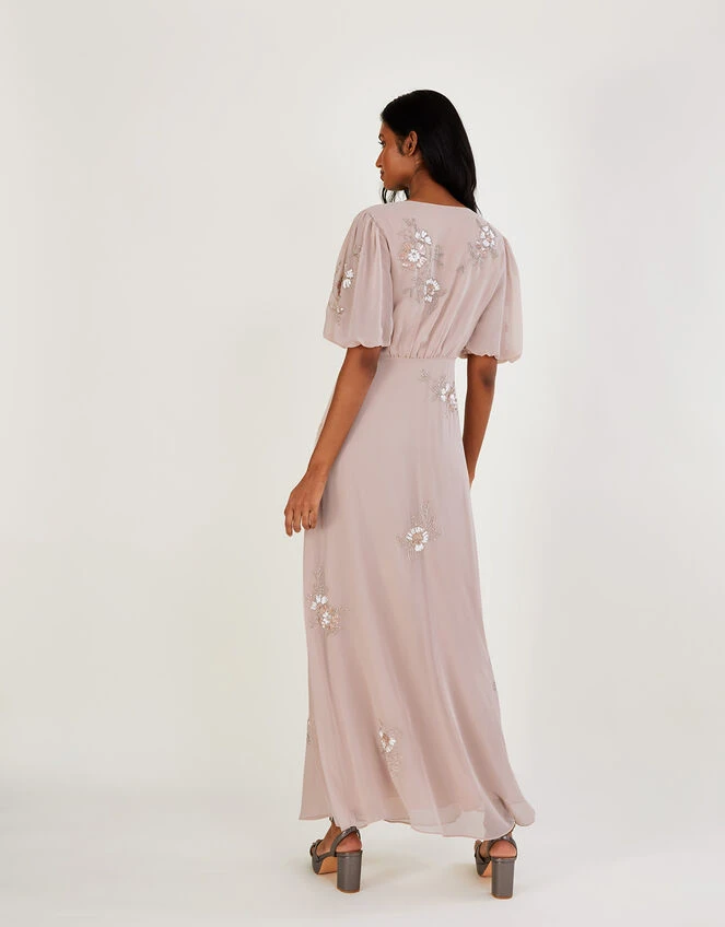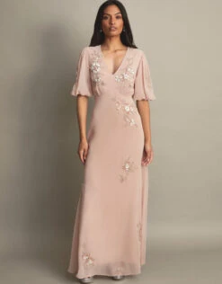 August is understated, floaty and gracefully delicate, the perfect recipe for an evening gown. Designed with an embellished bodice, she’s finished with a v-neckline and a defined empire line. The angel sleeves exude an ethereal element, supported by the floaty skirt that’ll gently catch the breeze.