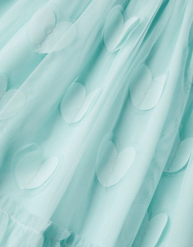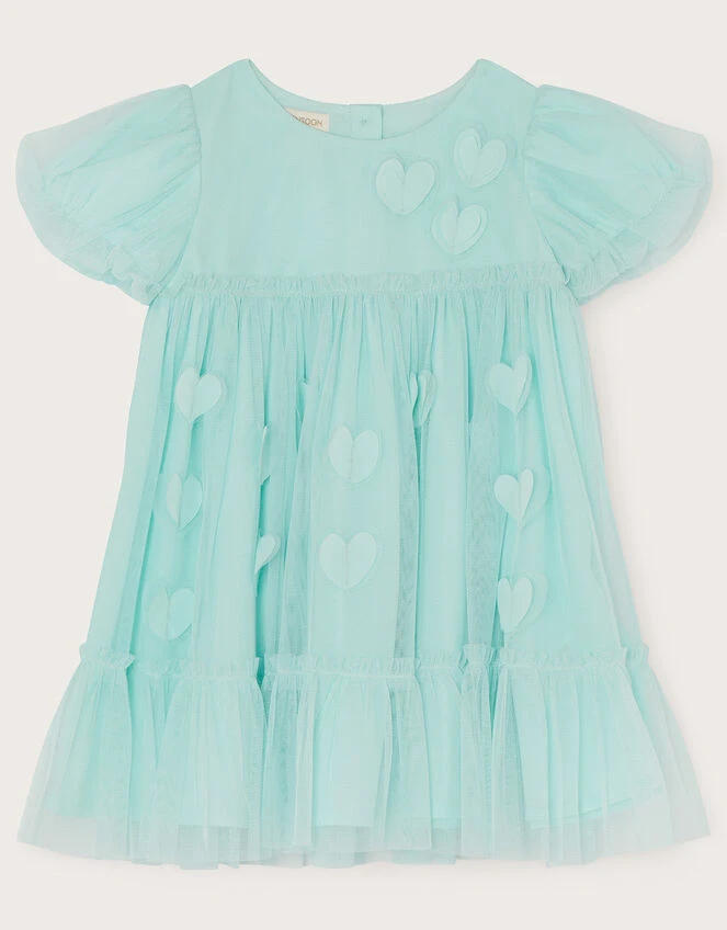 Light and gauzy, with plenty of room for wriggling, this dress scattered with sweet 3D hearts for a pretty touch on their party outfit. It’s cut in a swing style, falling loose at the bodice with the mesh skirt for comfort. Fastens on the reverse with a button closure