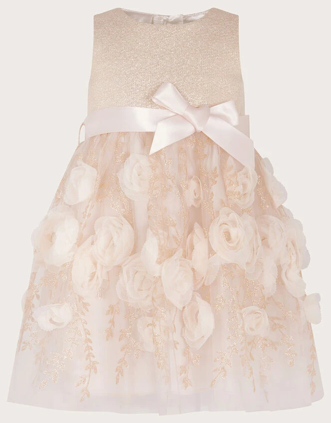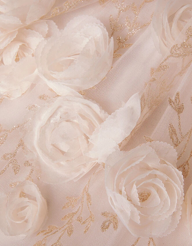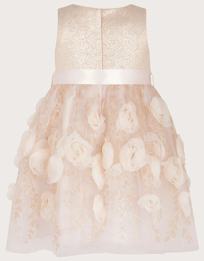 Is their own birthday approaching? Slip your little one into our Ella dress, a piece fit for true royalty. It combines a bodice doused in sequins and a silky satin ribbon, whilst the skirt is embellished with rows of 3D roses and winding foiled florals. Fastens on the reverse with a zipper.