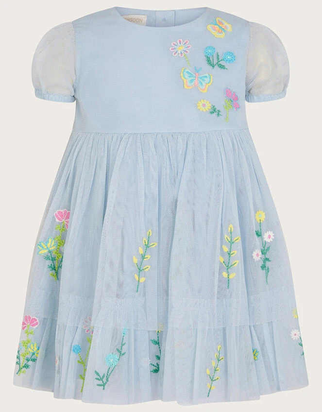 Get your littlest one ready for their first summer party season with this dress. It’s cast in a gentle baby blue hue, with a bouquet of embroidered florals and a scattering of butterflies to finish. The bodice sits snug, whilst the tulle skirt allows plenty of room for excited kicking.