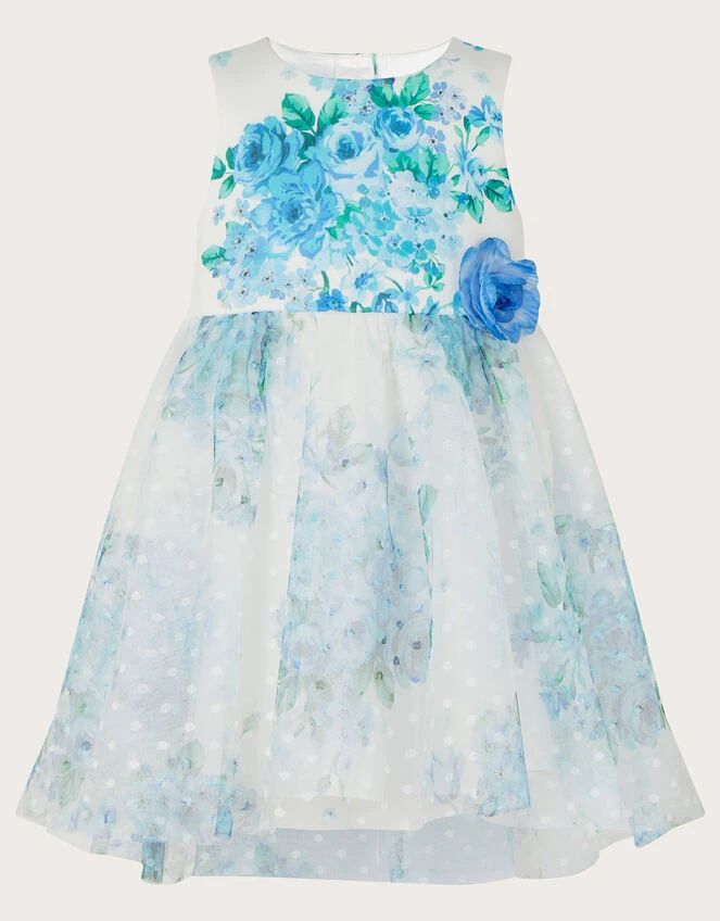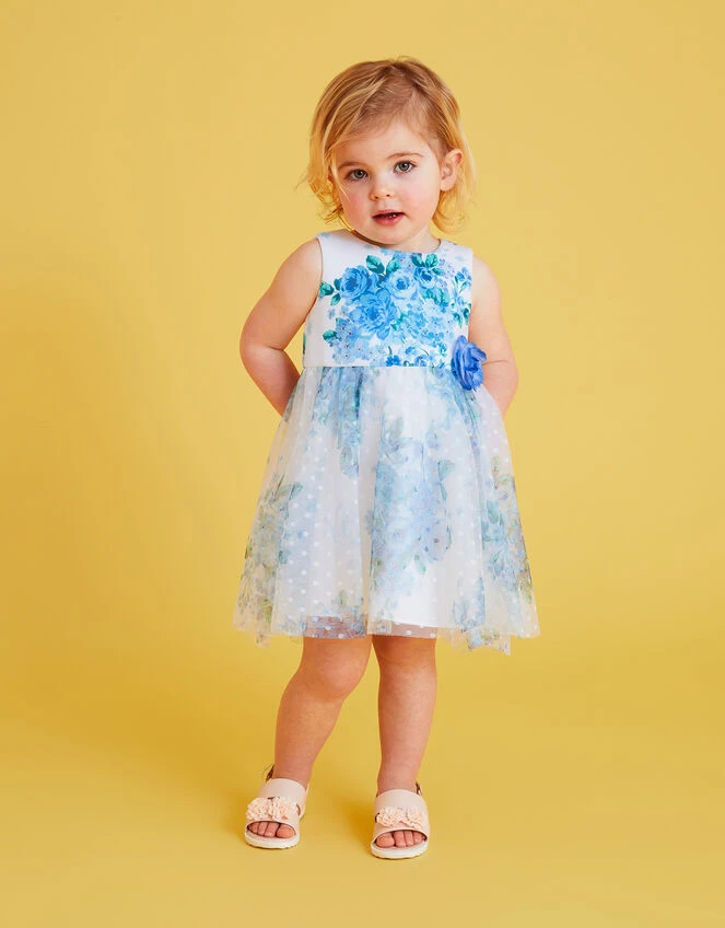 MONSOON Baby Heidi Tulle Print Dress Blue
