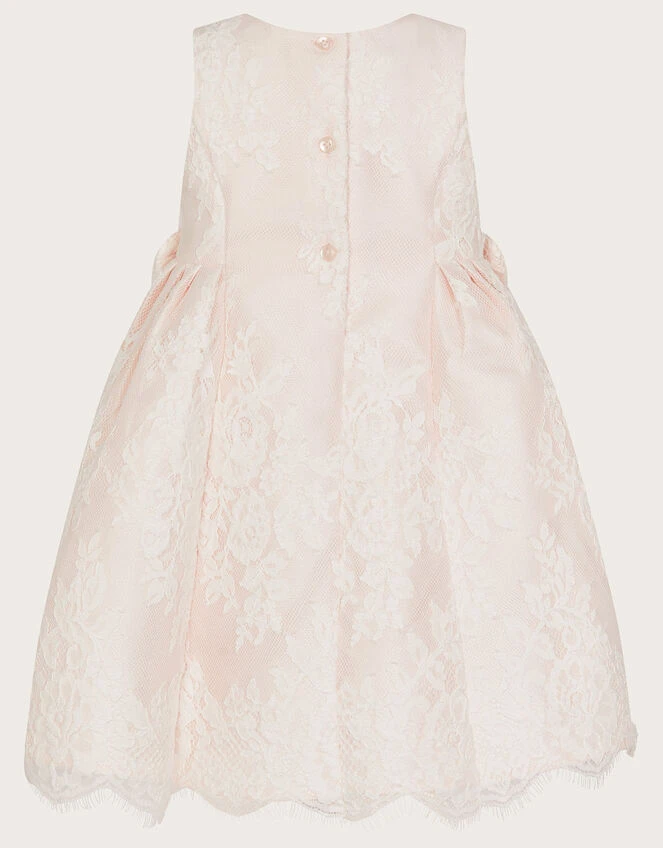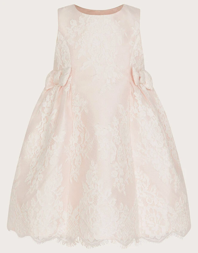 Treat your new little princess to this extra-special piece, combining twill and floral eyelash lace. Around the waist sits a bow on each side, while the hemline is beautifully scalloped for a delicate finish.