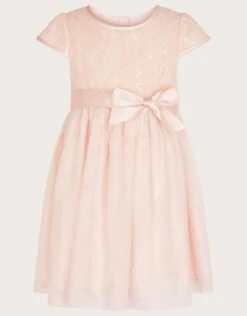 MONSOON Baby Truth Sequin Lace Dress Pink