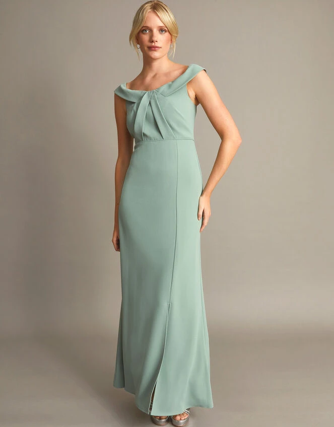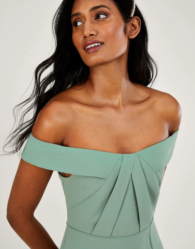 MONSOON Beatrice Crepe Bardot Maxi Dress Green