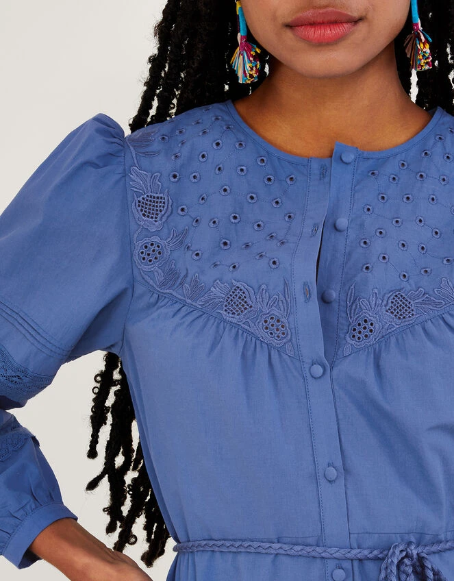 With lashings (and we mean lashings) of intricate embroidery, this dress’s cornflower blue backdrop is simply itching to get out for the springtime. Cascading from the neckline to the tiered hem is a button-through fastening for a smart touch, with banded embroidery to the sleeves and a tie-waist rope belt for a bohemian finish.