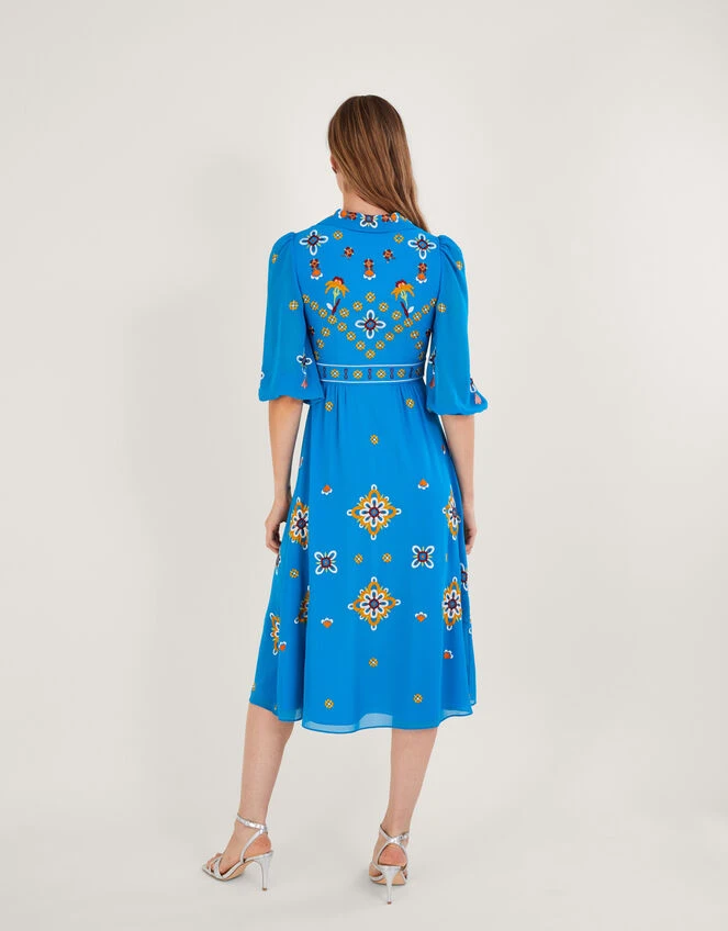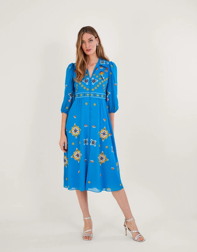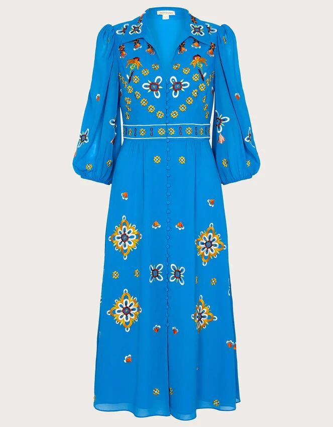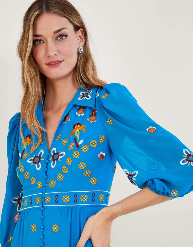 A spot of afternoon tea; late lunch reservations; catching up over some evening drinks – the list goes on for occasions you can wear our Blair dress. Featuring unique embroidery, it’s built with a collared neckline, button through front and cropped blouson sleeves, whilst the length is topped with airy mesh for a soft finish.