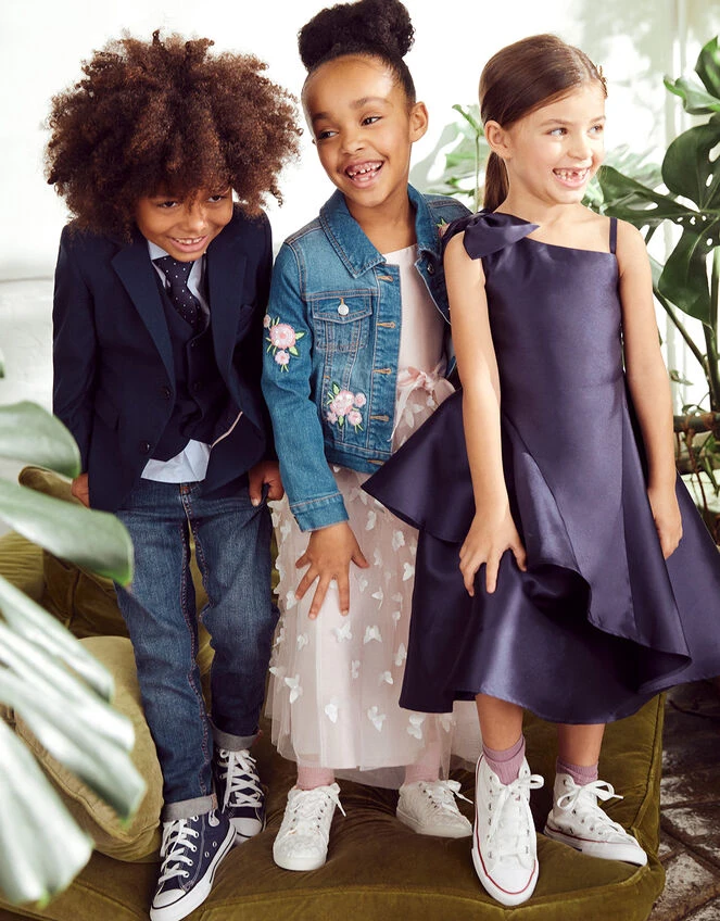 This party dress is fitted with a snug zip fastening for extra security and comfort whilst your little one features as the star of the show. The straps feature a single bow on one side, whilst the skirt is finished with oversized, asymmetrical frills for a voluminous look.