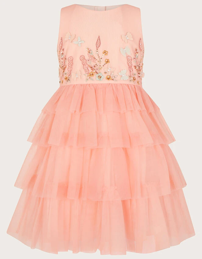 A pretty-in-pink addition to their party wardrobe, the bodice on this dress is embellished with an ethereal mix of butterflies and botanicals. The flouncy, bouncy skirt is made with layered tulle, fastening on the reverse with a zip closure. Pink