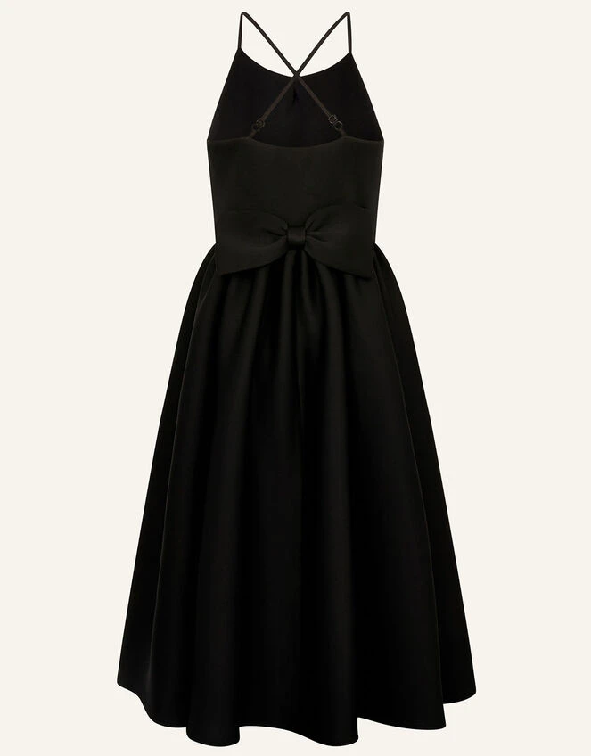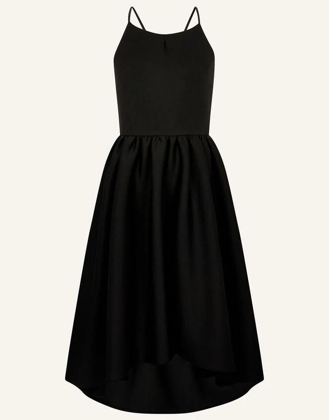 Events dressing is made easy with this all-black dress, designed with a beautifully dipped skirt to make her feel like a princess. A bow at the back adds the perfect finishing touch, whilst the cross straps are adjustable to ensure a comfy fit. Black