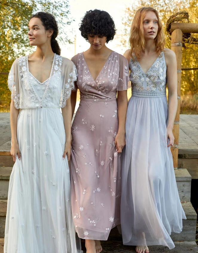 Introducing Bree: our angelic embroidered dress that’s built with soft flutter sleeves and a maxi skirt that delicately drapes to the floor. We think she’ll be a great option for bridesmaids. Fastens with a zipper to the reverse.