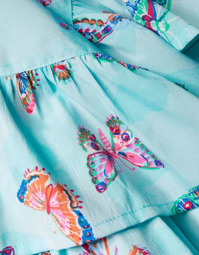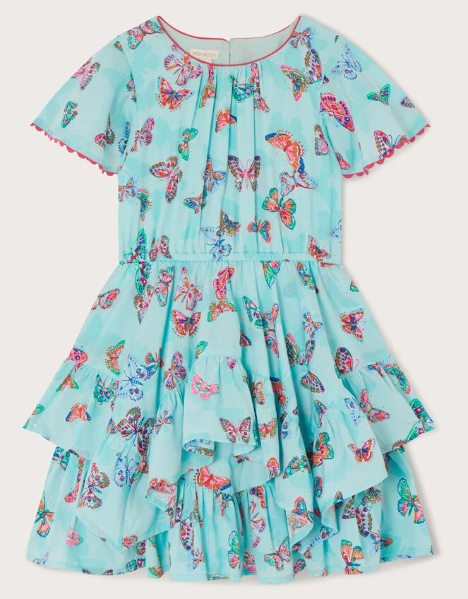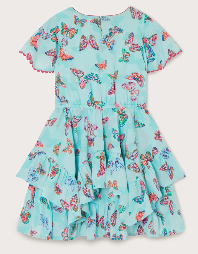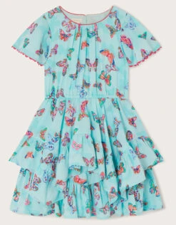 Fluttering like a delicate butterfly, this dress features tiers, ruffles and pleats that’ll move just like a butterfly’s wings. The bodice features scalloped trims, with pleating to the front for a pretty finish. The aqua backdrop makes it a perfect summer piece, ready for garden parties and sunny celebrations.