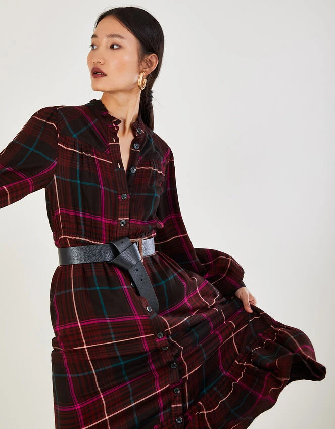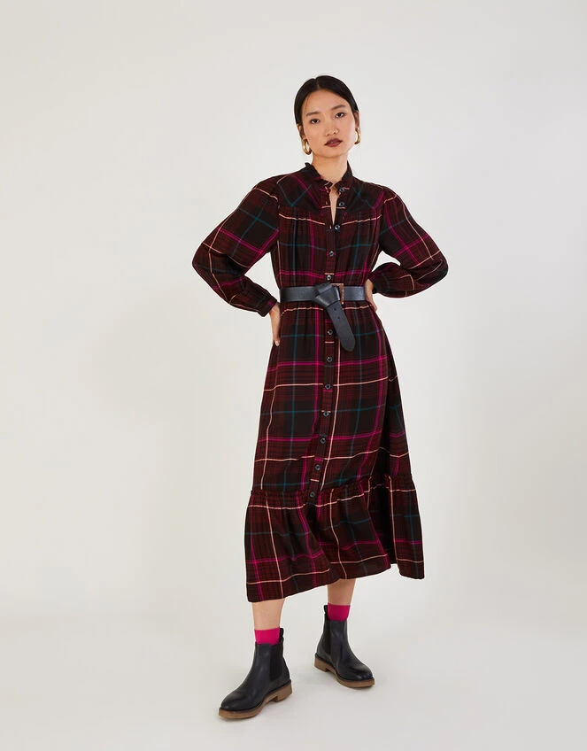 Check print was simply made for autumn, so opt for this dress for anything from pumpkin picking to casual days in the office. It features a button-through fastening, falling into a flowing midi skirt with tiered detailing to the hem that’ll skim the top of your ankle boots perfectly.