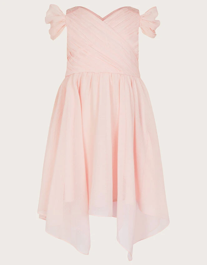 Sprinkled with sequins over the shoulders, this dress combines floaty chiffon with sparkles to create the perfect party piece. It features a wrap bodice with cold-shoulder sleeves and a pixie-inspired hanky hem. Finish the look with our plush tights and ballet flats.