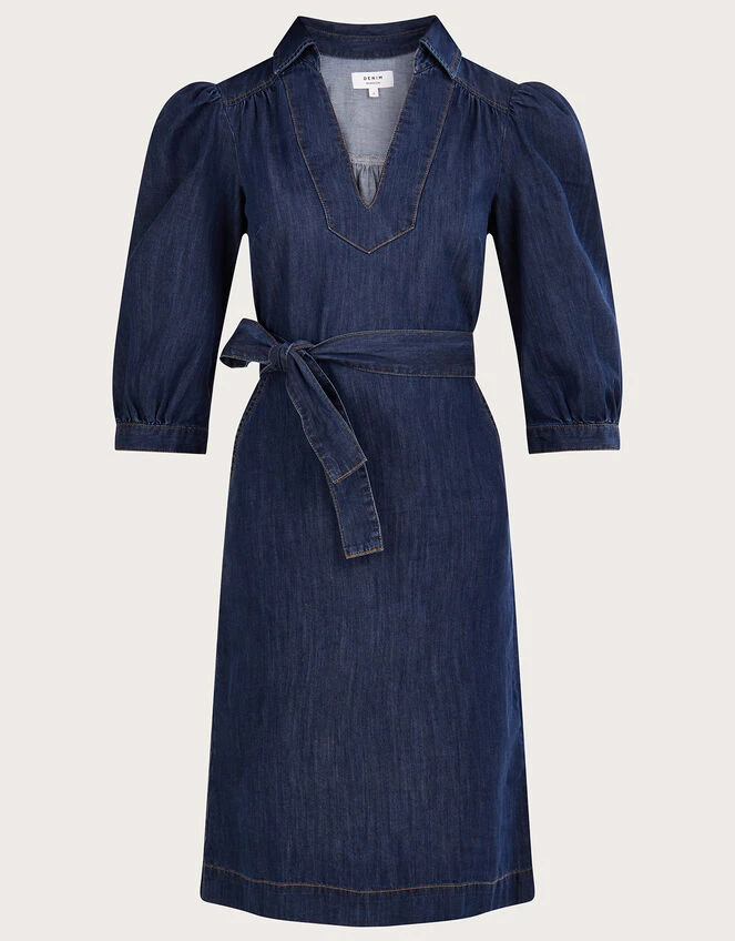 Adding a cool and casual edge to your outfit, this dress is fabricated in soft and light denim. Created in sustainable cotton, it falls to a midi-length, with cuffed sleeves and a collar. The V-neck allows room to accessorise, while the tie-wait best gives it a cinched finish.