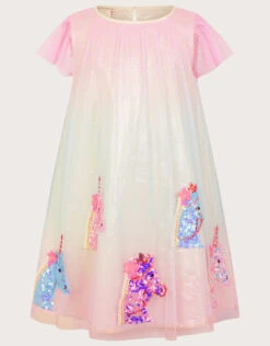 It’s party time, which means it’s time to get the sparkles out. Loose fitting and fun, this trapeze dress is designed with sequin unicorns, while remaining super comfortable for when they take on the dancefloor.