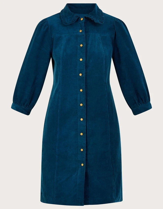 Thick and luxurious cord was made for autumn, that’s why we created this dress! Designed in a shift silhouette, Eliza features pretty detailing throughout, from her ruffled collar to the gold button-through fastening. Blue