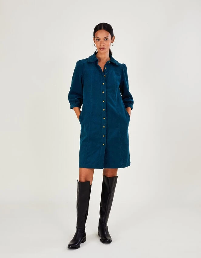MONSOON Eliza Plain Cord Dress Blue