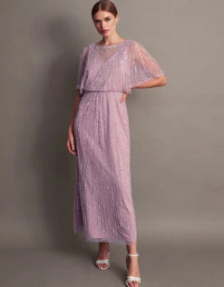 With sequins sat in liner patterns and blooming florals enhancing the cape, Elizabeth is sure to mesmerise at special occasions. Her angelic bodice is built with tulle sleeves and a relaxed fit, that seamlessly slips into a slimline skirt. Spun in recycled polyester, take a look at the flattering V shape on the back with a concealed zip to fasten.