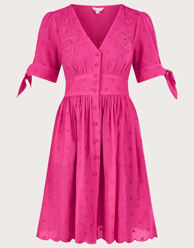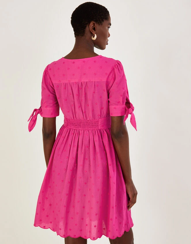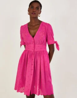 In airy dobby cotton, this floral embroidered dress has a sweet feel to it, with the bunny tie sleeves and fit-and-flare silhouette. Style her with a pair of boots and layer a jumper over on chilly days.