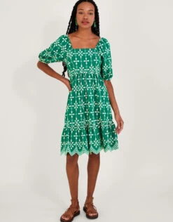 With bright summery hues and floral embroidery, this dress is a wardrobe staple for the warmer months. Created in soft, sustainable cotton, it has a lighter-than-air feel that will keep you feeling cool and conscious during brunches, barbeques, and other weekend outings.