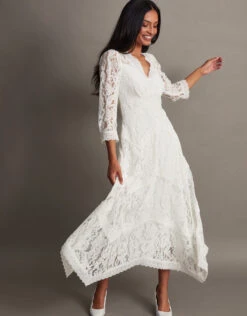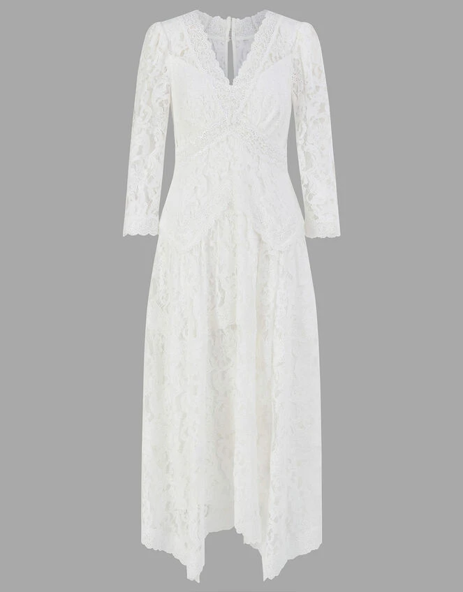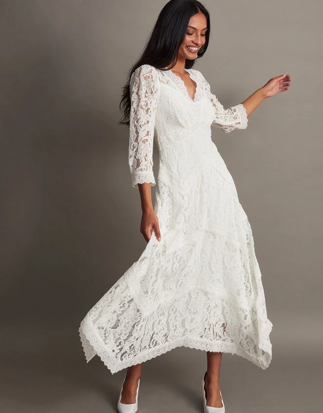 MONSOON Emily Lace Hanky Hem Bridal Dress Ivory