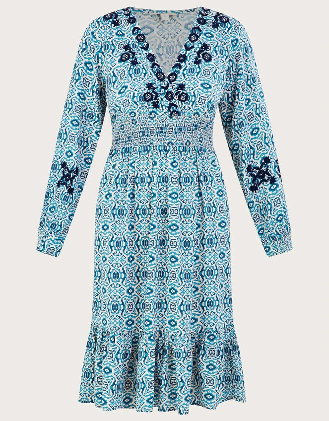 Faye’s forever forgiving wrap silhouette will keep her at the forefront of your spring office edit. Boasting blue tones, she features navy floral embroidery to the neckline and sleeves with mini pearl beading throughout.