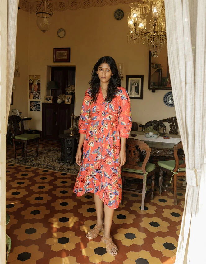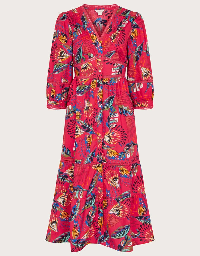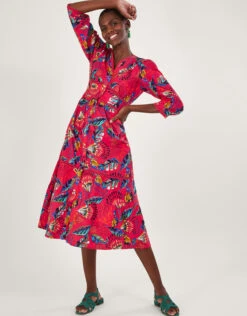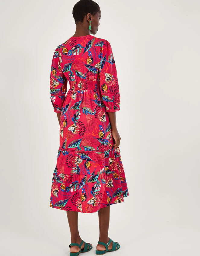 Get floaty with Flavia, our feather print midi dress. She boasts a tea-style bodice, with embroidered detailing that runs through the neckline and round the cinched waistband. The midi length skirt ensures there’s room to show off your sandals and catch the summer breeze.