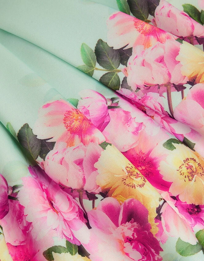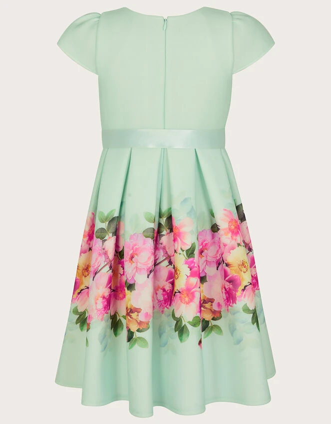 MONSOON Floral Border Print Scuba Dress Green