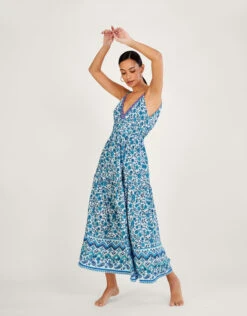 A summer edit staple, take this floral dress for a spin on the marina for drinks and dinner. Finished with a cami-style bodice with cross-straps to the back, this dress falls into a flowy, tiered skirt that’ll catch the coastal breeze beautifully.