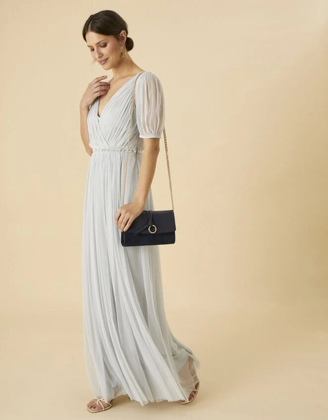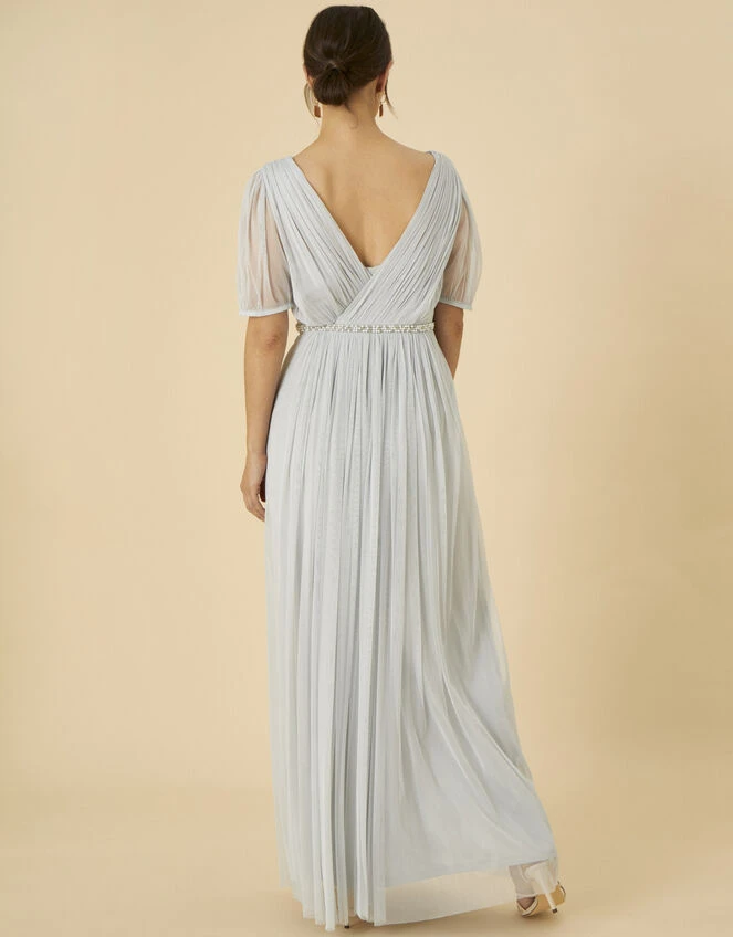 Float around the party with Gail. Her Grecian-style makes for a beautiful fall in the skirt that’ll flow in the summer breeze. She’s cinched in at the waist with a beaded pearl band for a delicate touch of shine.