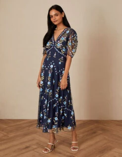 Fashioned in lilac and aqua florals, Ginny is a special piece in your evening edit. Her fit-and-flare profile is comprised of puff sleeves and a swishy mesh overlay that moves beautifully with every step. Designed in lightweight recycled polyester with a zip fastening on the reverse.