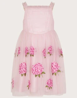 MONSOON Harriet Hydrangea Embroidered Tulle Dress Pink