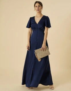 Angelic appearances: Ivy’s beautifully swishy silhouette is built upon short flutter sleeves and a floaty maxi skirt. Detailed finishing touches to the dress is what makes Ivy so special, including scallop trims, lace inserts and a button through front that brings a point of difference. Style with nude heels and a clutch for any occasion. Blue