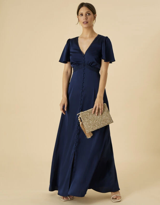MONSOON Ivy Satin Lace Maxi Dress Blue