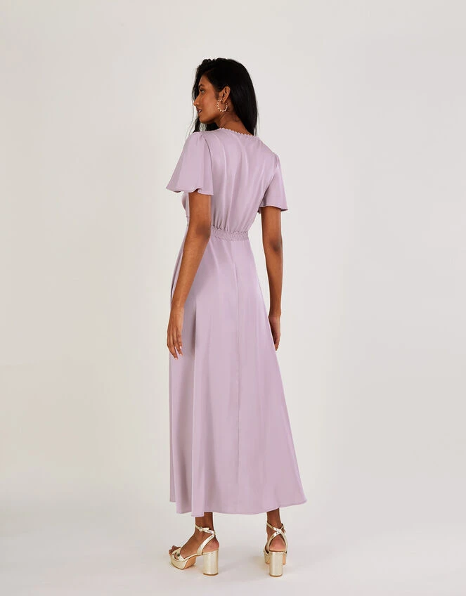 Ivy’s satin fabrication is the perfect option for bridesmaids, allowing a gentle fit for all day wearing. She’s cut in a timeless tea silhouette, with lace trims to the neckline and empire line for just a sprinkling of vintage glamour. Her flutter sleeves drape over the shoulder in beautiful waves, adding movement as they take to the aisle, whilst the skirt falls to a slightly shorter maxi length. Mink