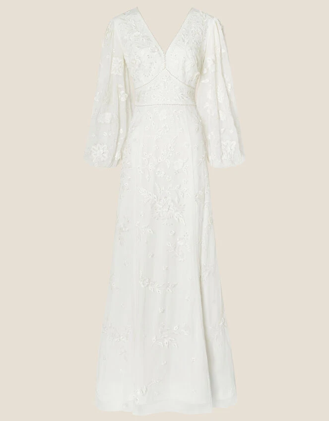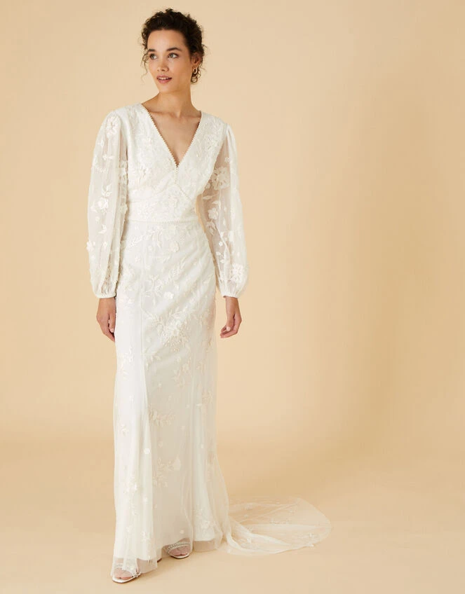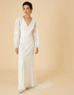 Made with love: our romantic-style dress Jennifer, will enchant your guests with her unique, embroidered, long mesh sleeves and delicate train. She’s finished with intricate embellishments that cover the dress head-to-toe, sure to add a fairytale twist to your special day.