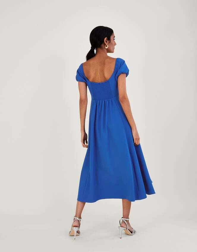 Stress less about last-minute styling with Katie in your collection. Her more plain design works alongside the fit-and-flare silhouette to provide an option for any occasion, with short puff sleeves and a ring detail to finish. Available in blue or pink, style with metallic heels and a matching clutch to style it through the end-of-year celebrations.