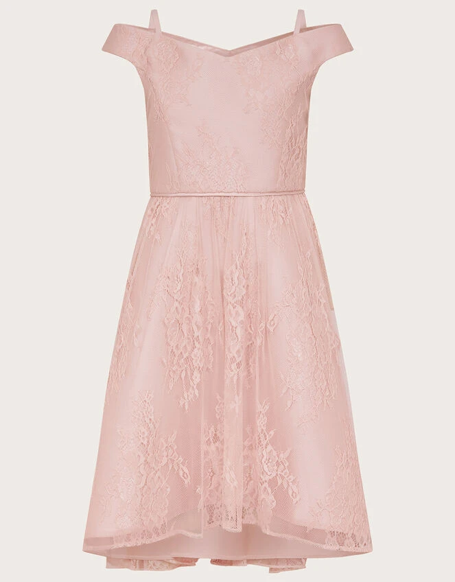 MONSOON Lace Bardot Prom Dress Pink