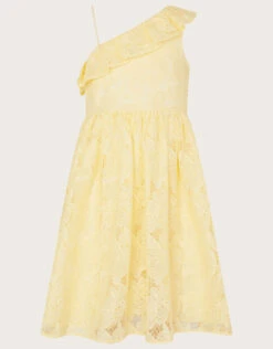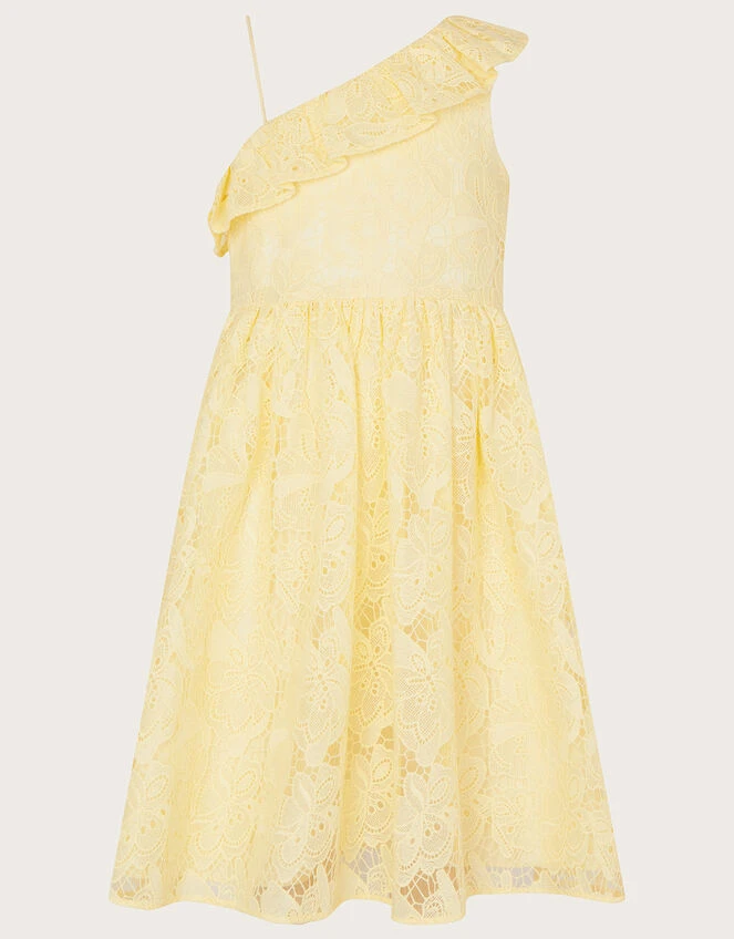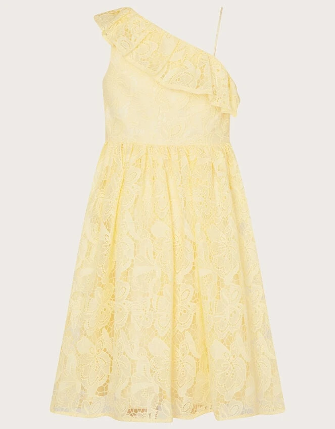 MONSOON Lace One Shoulder Dress Yellow